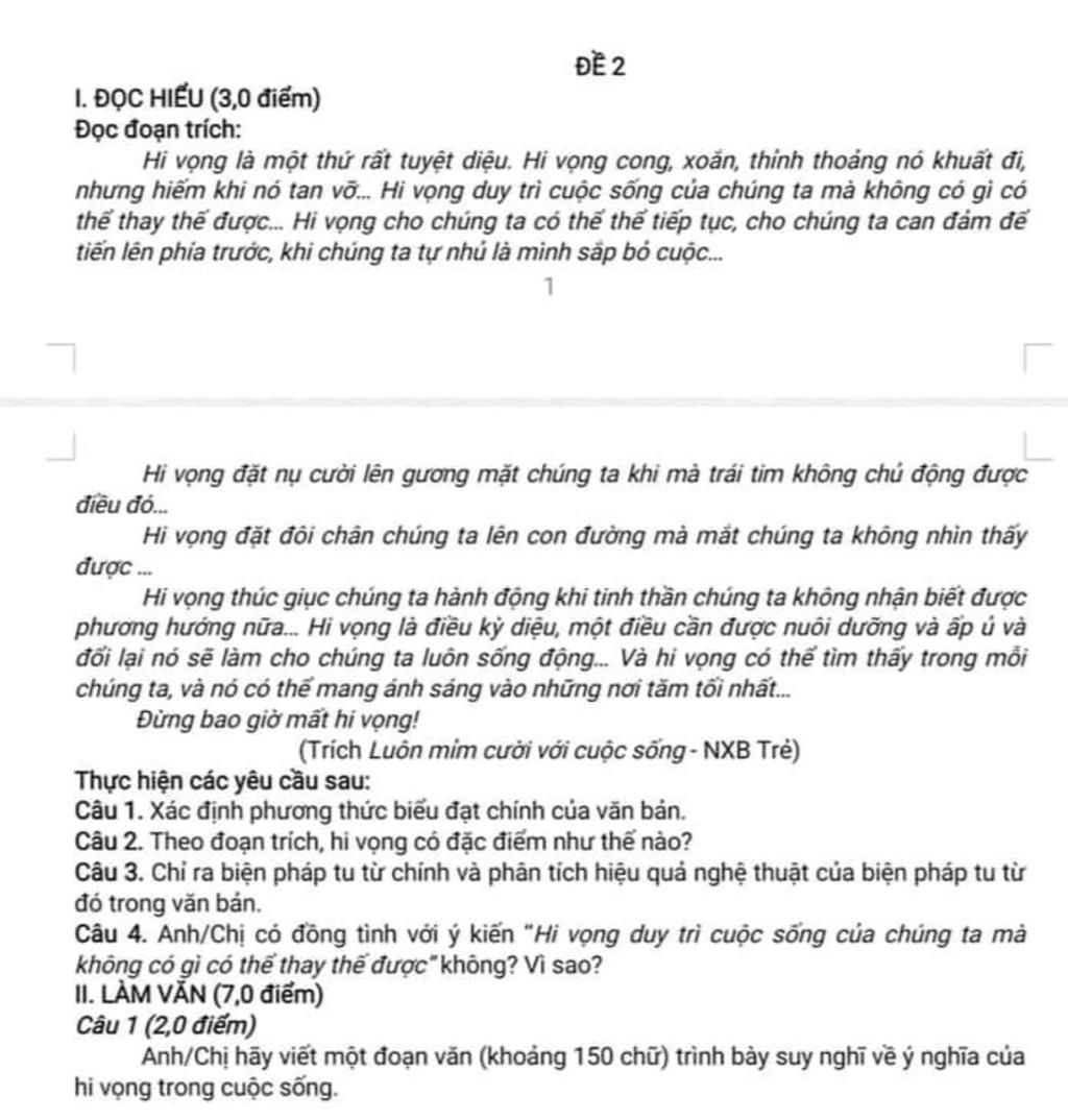 Nhấn mạnh thông điệp mà văn bản muốn truyền đạt đó là vai trò của hy vọng đối với đời sống tinh thần của mỗi con người.