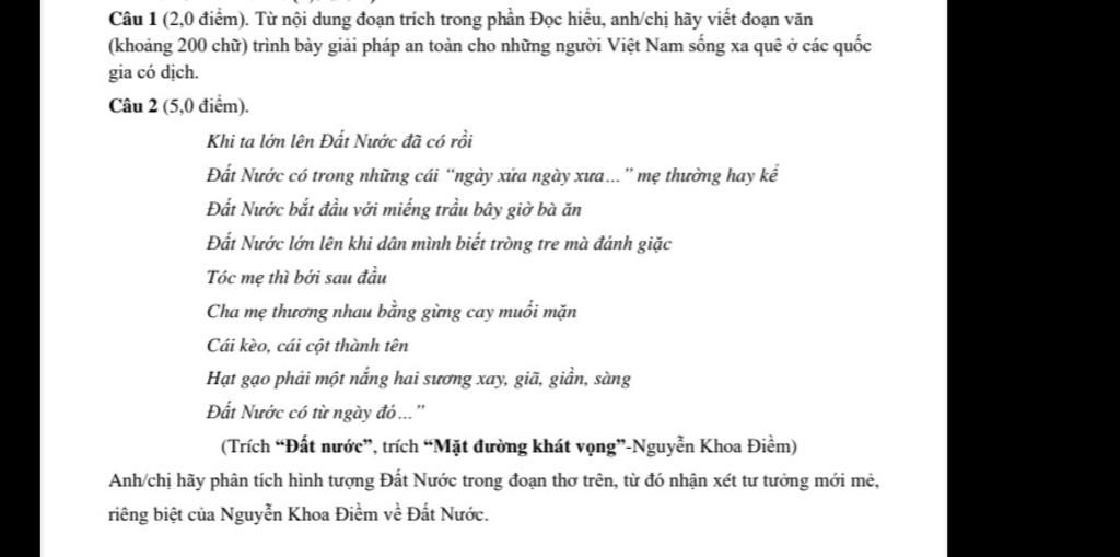 Câu 1 (2,0 điểm). Từ nội dung đoạn trích trong phần Đọc hiểu, anh/chị hãy viết đoạn văn (khoảng 200 chữ) trình bày giải pháp an toàn cho những người Việt N