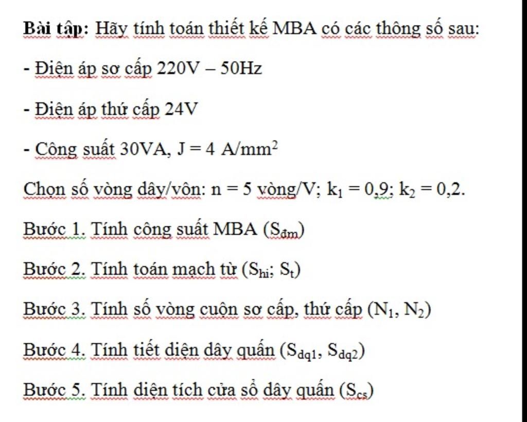 Trang chủ Vật Lý Lớp 11 Bài tập: Hãy tính toán thiết kế MBA có các...