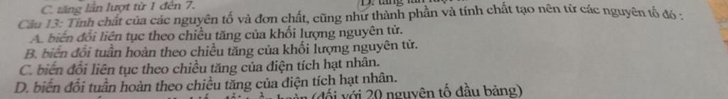 Biến đổi tuần hoàn theo chiều tăng của điện tích hạt nhân