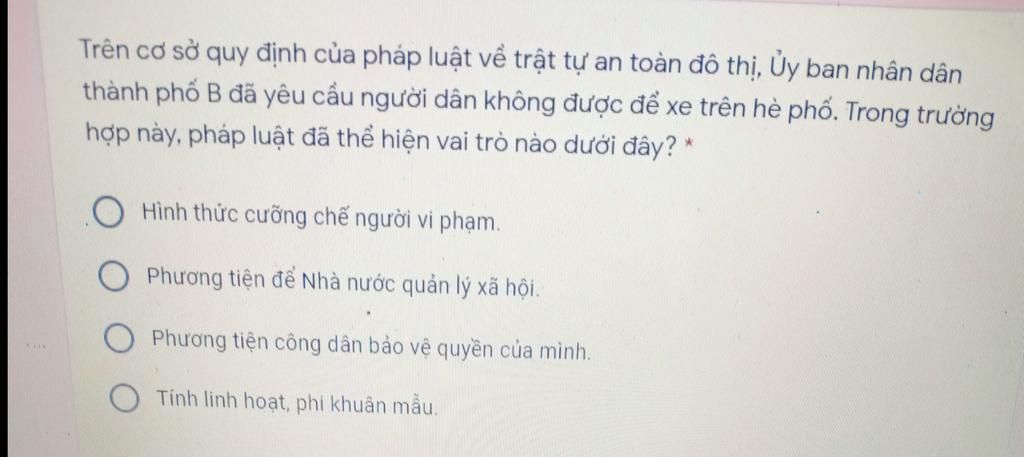 =>Nhà nước sử dụng luật phát để quản lý người dân không được để xe trên hè phố
