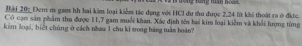 2 kim loại cách nhau 1 chu kỳ → Liti, Kali