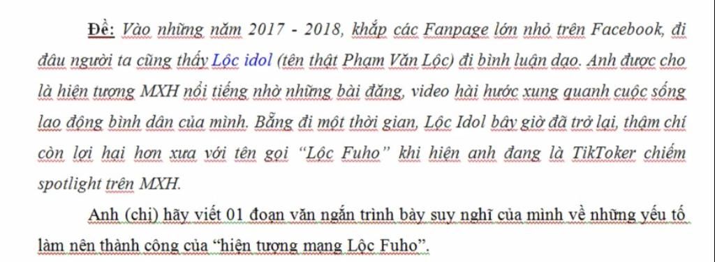 Đề: Vào những năm 2017 - 2018, khắp các Fanpage lớn nhỏ trên Facebook, đi đâu người ta cũng thấy Lộc idol (tên thật Phạm Văn Lộc) đi bình luận dạo. Anh đượ
