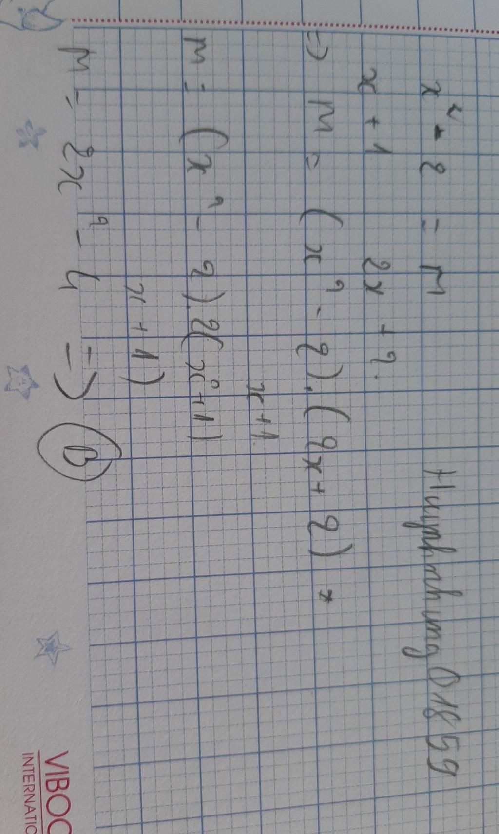 -2 M Câu 12: Đa thức M trong đăng thức x+1 là 2x+2 А. 2x? - 2. В. 2х2-4. C. 2x +2. D. 2.x +4.