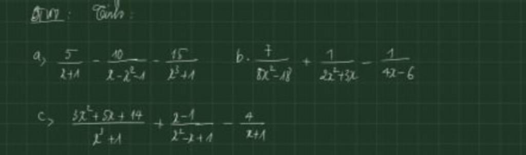 `a)` `(5)/(x+1)-(10)/(x-x^2-1)-(15)/(x^3+1)`