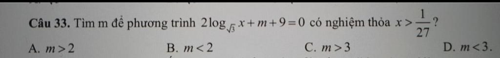 `2log_(sqrt3)x+m+9=0 \ \ \ \ \ \ (x>0)`