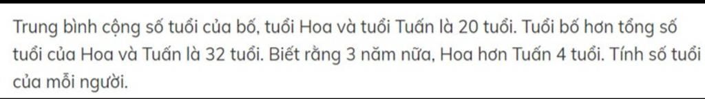 Tổng số tuổi của bố ,Hoa và Tuấn là