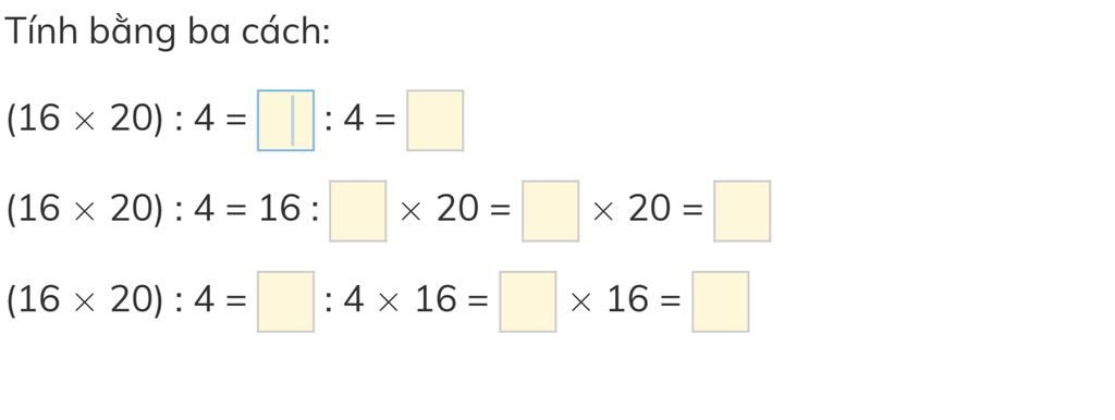 ( 16 x 20) : 4 = 20 : 4 x 16 = 5 x 16 = 80