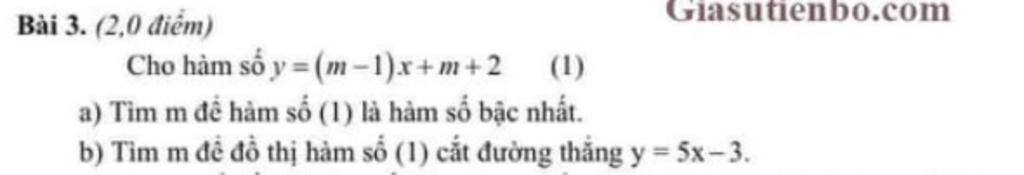 b,Để đths (1) cắt đt y=5x-3 thì m-1$\neq$ 5<=> m$\neq$ 6
