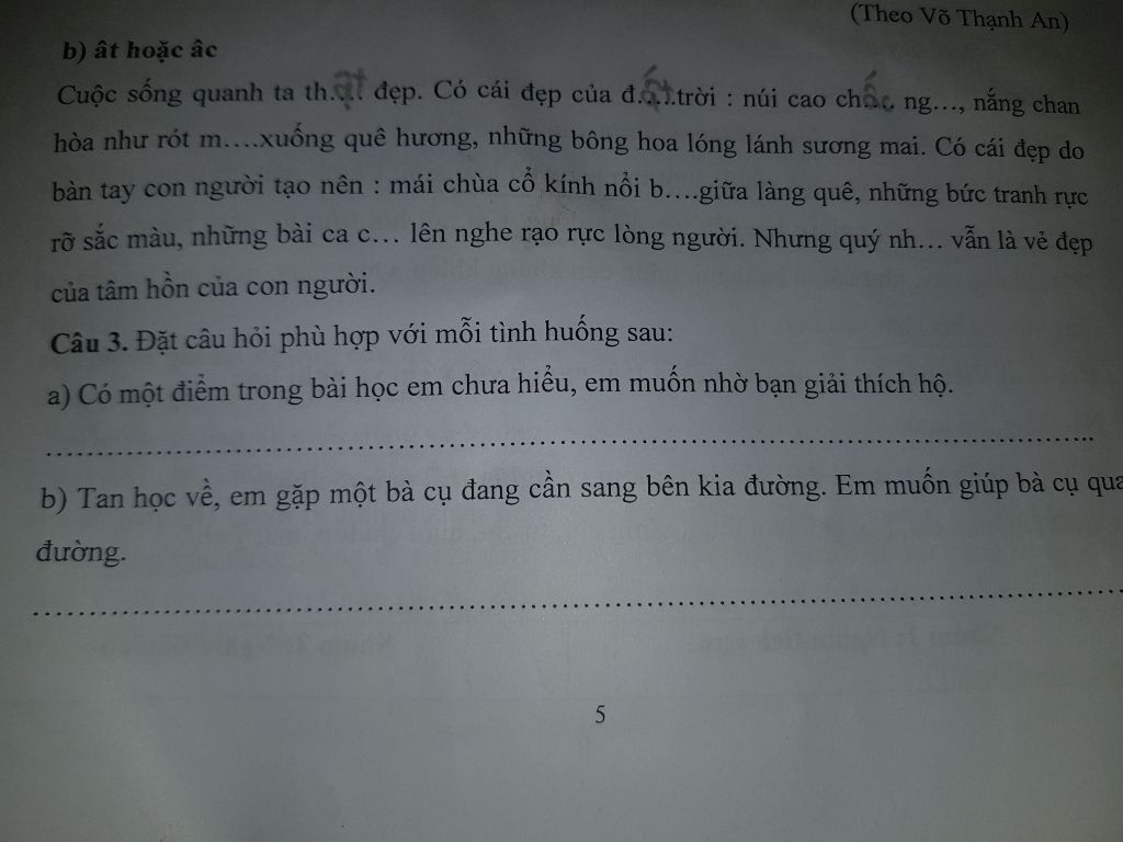b) Tan học về ... bên kia đường. Em sẽ làm gì ?