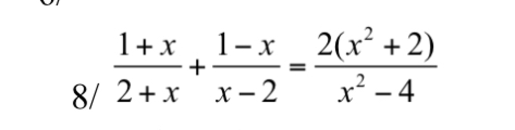 \to \frac{{{x^2} - x - 2 - {x^2} - x + 2}}{{\left( {x + 2} \right)\left( {x - 2} \right)}} = \frac{{2{x^2} + 4}}{{\left( {x + 2} \right)\left( {x - 2} \right)}}\\