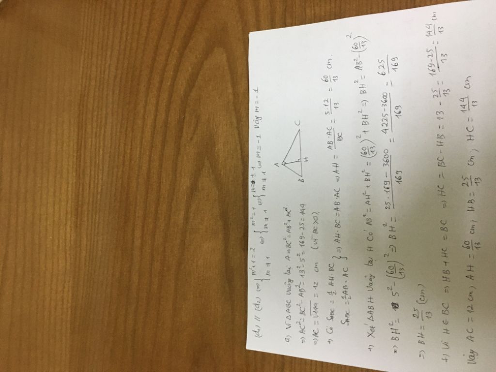 cho tam giác ABC vuông tại A có AB=5cm, BC=13cm, kẻ AH vuông góc với BC tại H. Tín AC,AH,BH,CH ? các vị cao nhân xin trợ giúp thảo dân với ạ