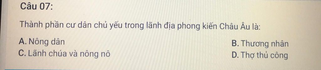 C : Lãnh chúa và nông nô