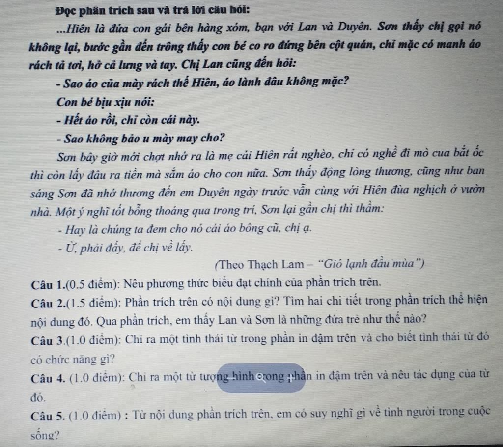 Đoạn trích trên kể về sự giúp đỡ của Sơn , Lan đối với Hiên.