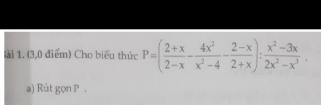 2+x ài 1. (3,0 điểm) Cho biểu thức P= 4x 2-x x²-3x 2-x x-4 2+x 2x-x a) Rút gọn P.