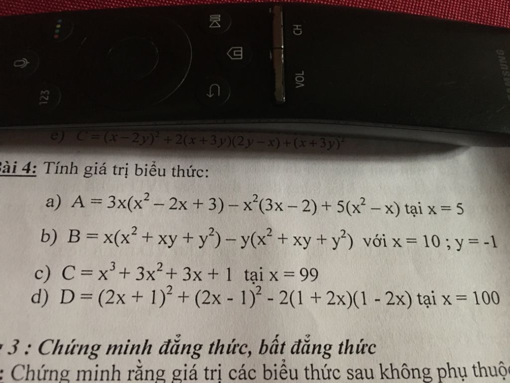 4) a) A = 3x(x^2 - 2x + 3) -x^2(3x - 2) + 5(x^2 - x)