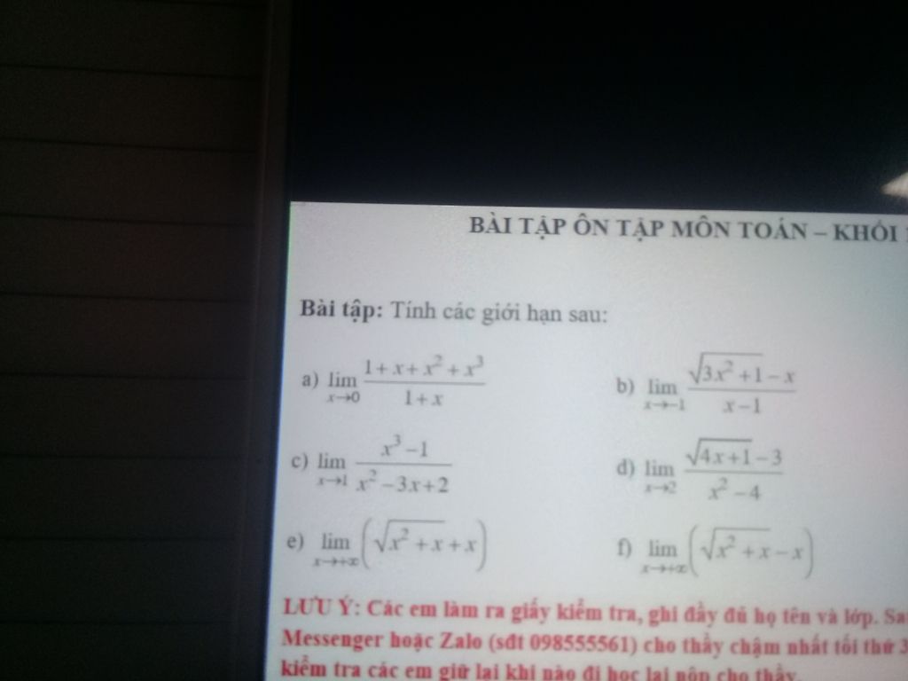 d.\mathop {\lim }\limits_{x \to 2} \frac{{4x + 1 - 9}}{{\left( {x - 2} \right)\left( {x + 2} \right)}} = \mathop {\lim }\limits_{x \to 2} \frac{{4\left( {x - 2} \right)}}{{\left( {x - 2} \right)\left( {x + 2} \right)}}\\