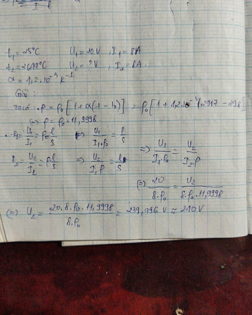 13,78mV. A. E = 13,00mV. B. E = 13,58m V. Câu 3. Ở nhiệt độ 25° C, hiệu điện thế giữa hai đầu bóng đèn là 20 V, cường độ dòng điện là 8 A. Khi đèn sáng bìn