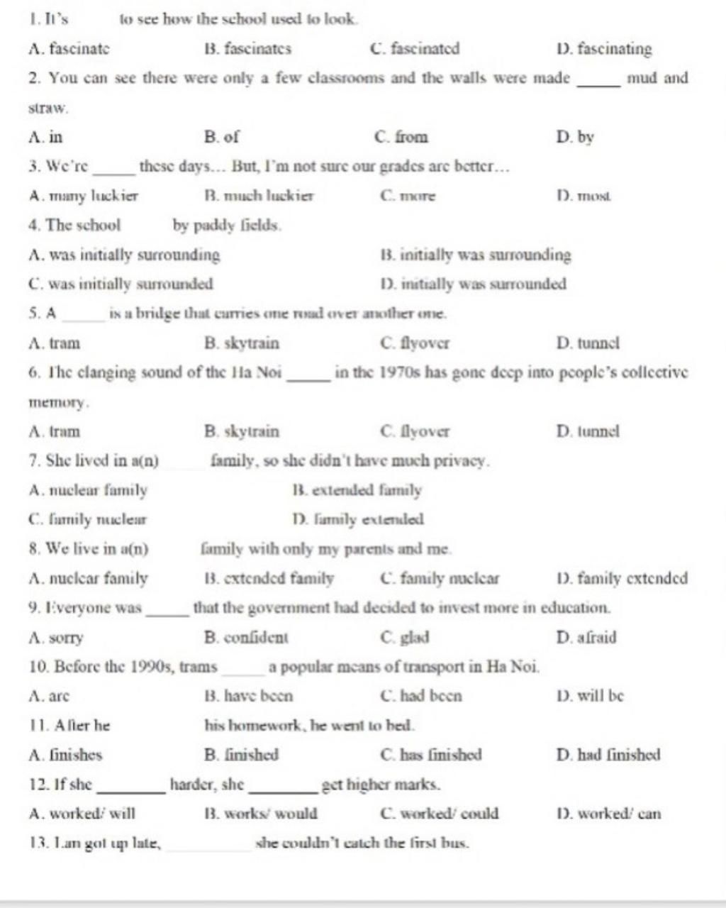 1. C (đáp án phải thuộc thể adj)