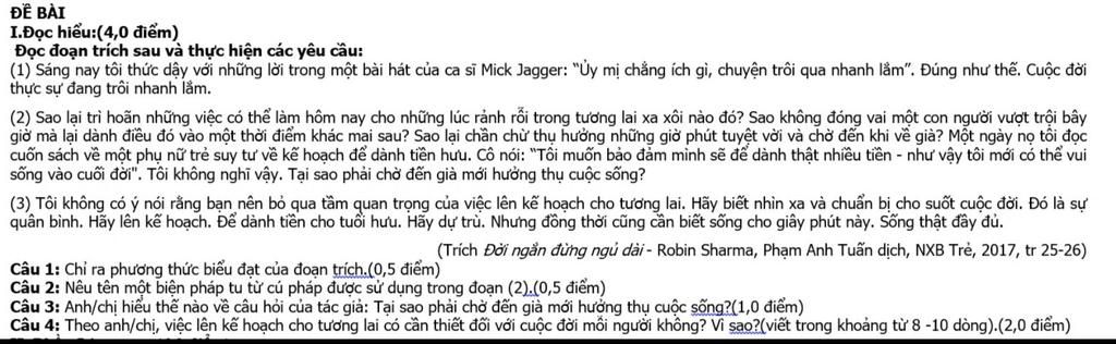 `-`Phương thức biểu đạt chính của đoạn trích: Nghị luận