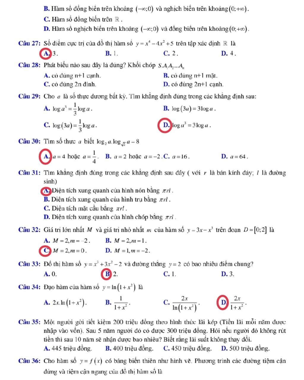 Làm giùm mình Câu 35 thôi........ Nếu đc thì 28 luôn nha .....ThanksB. Hàm số đồng biển trên khoảng (-;0) và nghịch biến trên khoảng (0;+0). C. Hàm số đồng biế
