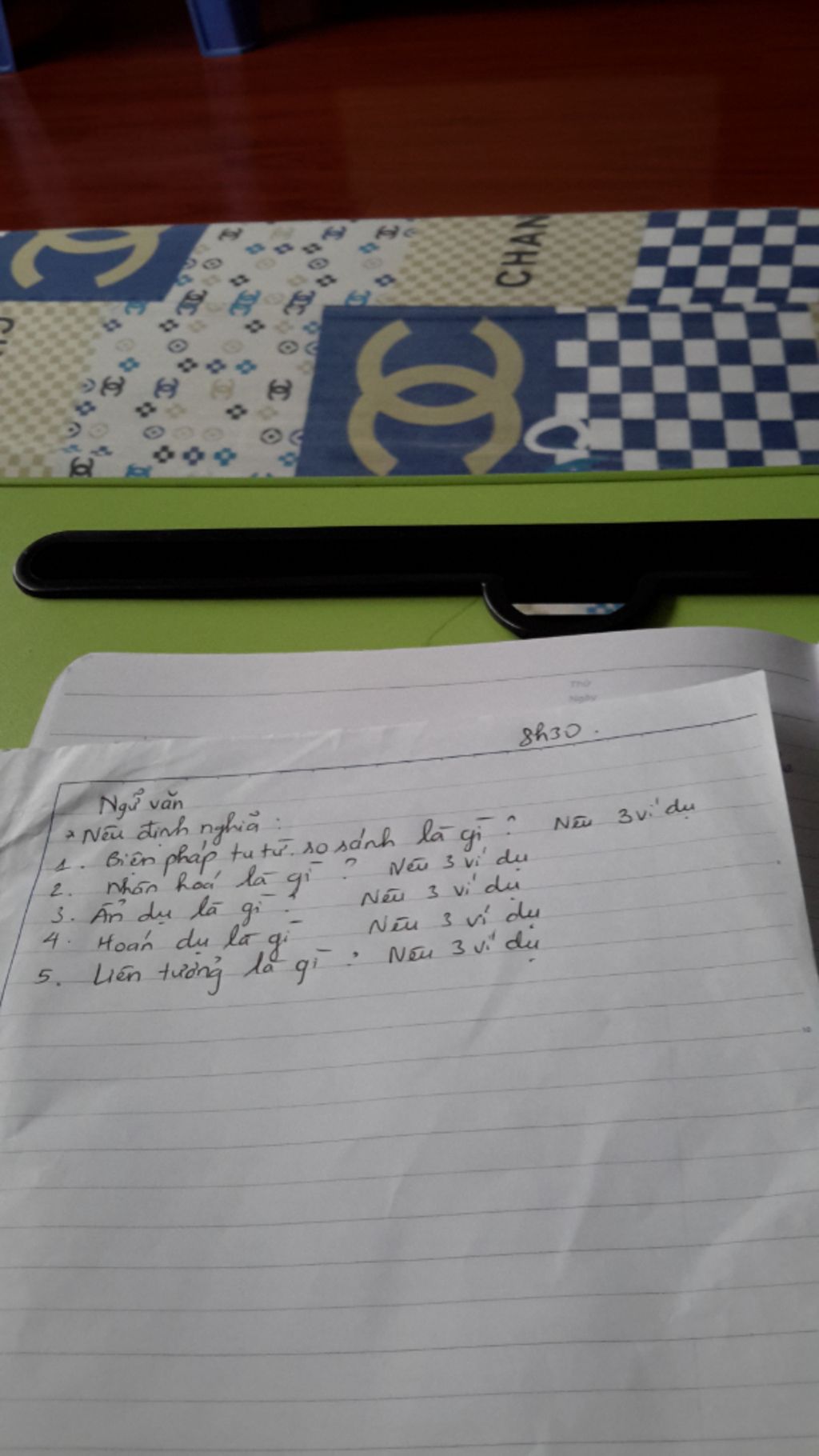 Câu 5:Liên tưởng là quan hệ giữa các từ mà khi một từ xuất hiện thì làm cho người ta nghĩ đến từ khác. - Biểu hiện những sự vật, hoạt động, tính chất, trạng thái, số lượng