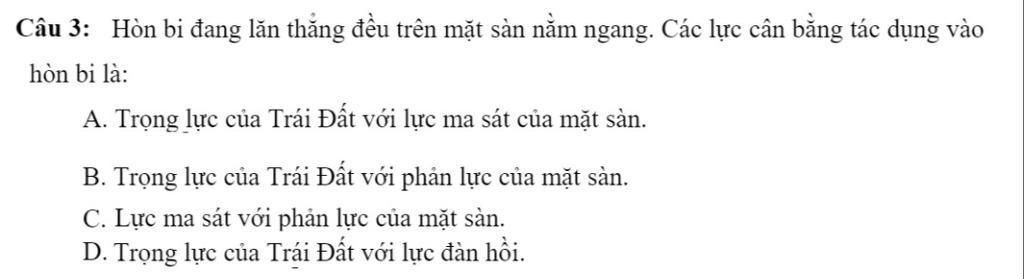 Hòn bi chuyển động thẳng đều nên có ít nhất 1 cặp lực cân bằng tác dụng lên nó