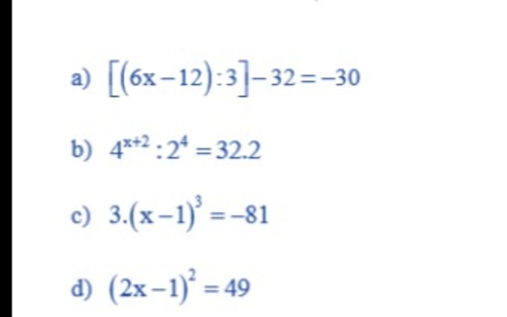 a) [(6x - 12) ÷ 3] - 32 = -30