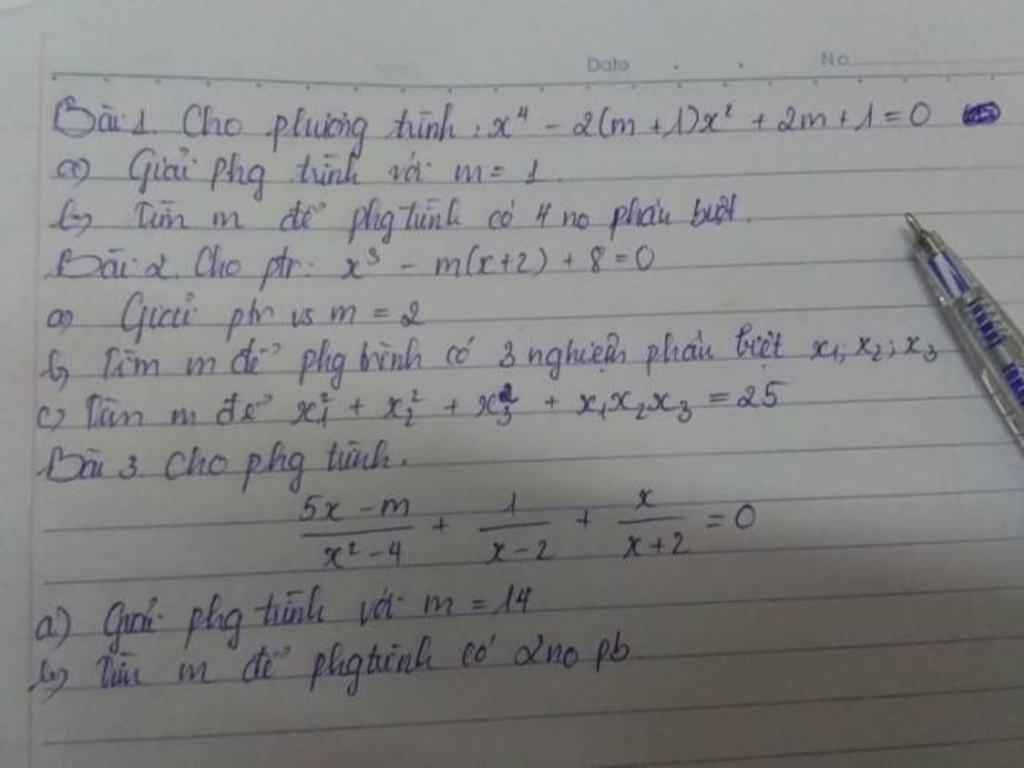 Data No. Sà1 Cho plubig tinh 1x" -2(m +1Dx' + 2nl=0 Baid Cho ptr: mlr+2) +8-0 Guai ph us m =d 5x-m x2-4 =D0 X+2 X-2 a) Gni phg tinh m= 14 IN