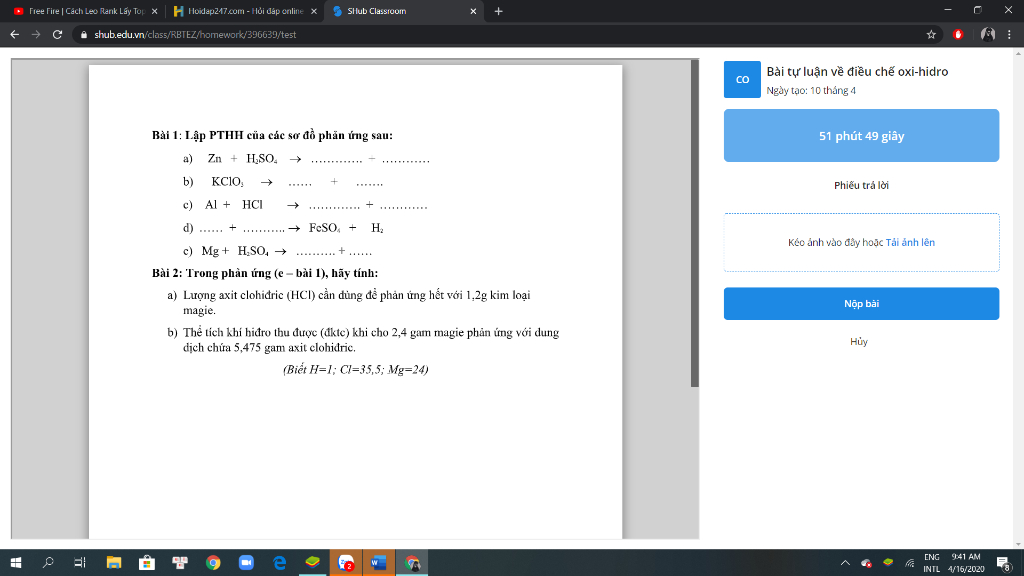 $a,PTPƯ:Mg+2HCl→MgCl_2+H_2$