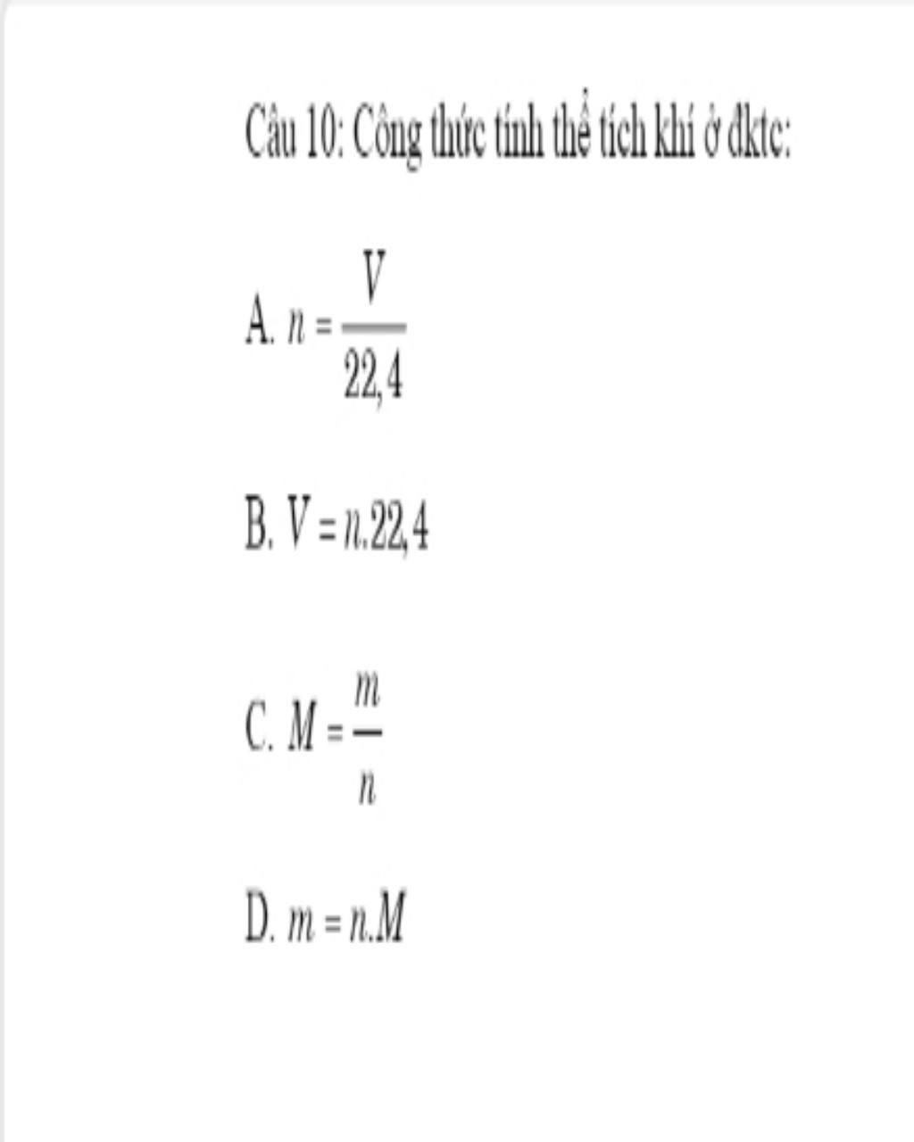 $\text{C ,D sai vì đây là công thức liên hệ giữa số mol , khối lượng và khối lượng mol}$